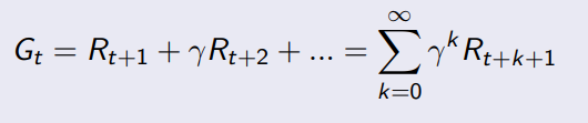 return 과 reward는 다른 개념이다. Return은 reward를 discount한 값을 모두 더한 값이다.