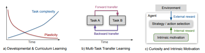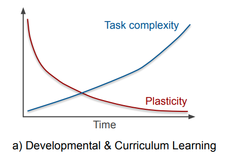 지능발달에 있어서 Critical Period이라 불리는 기간에는 다중신경망의 구조와 초기의 연결 패턴(developmental structure)을 형성하는 중요한 시기이다. 이때 유망한 curriculum을 고르는 것(curriculum learning)과 transfer learning은 새로운 domain의 문제를 해결하기 위해 기존의 지식과 기술들을 재사용할 수 있다는 점에서 특히 기본적이고 중요한 개념들이다.