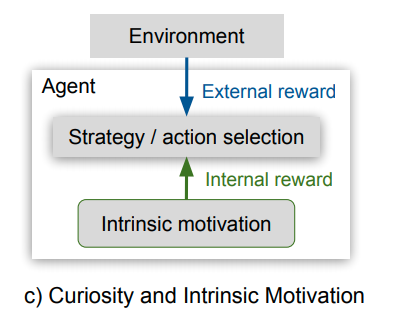 Curriculum Learning에서 주로 다루는 task selection problem은 학습효과의 최대화하기 위해 최적의 task를 골라야 하는 stochastic policy로 해결될 수 있어 보인다. 이때 모델의 충분한 exploration(탐험)을 권장하기 위해 reward signal로서 learning progress에 대한 지표를 만들게 되는데, 그 지표로서 Intrinsic Motivation이라는 개념이 등장한다.