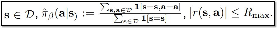 - empirical return of any policy π, J(π, ^M) : Dataset D에 의 해 관찰된 transitions(s, a, r, s')에 의해 생성된 emprical MDP, ^M에 대한 policy π의 discounted return을 의미