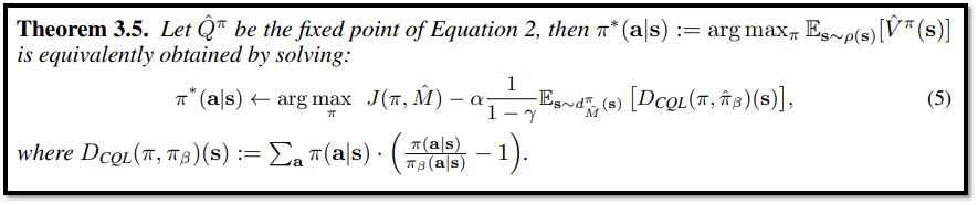 - Theorem 3.5은 CQL이 RL empirical objective의 최적화 과정을 보여줌 (파라미터 업데이트)