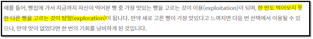 - 즉, 초기에는 exploration을 거의 할 수 없다.