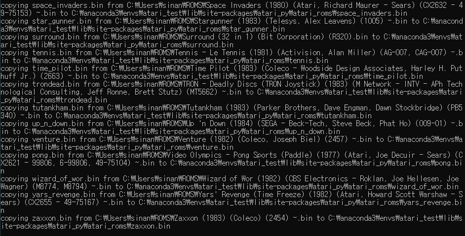 - 2-3. atarip_py : gym에서 atari-py를 사용할 수 있게 도와주는 라이브러리 입니다.