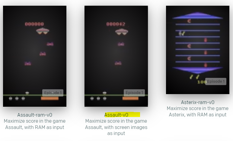 참고 링크 1 (OpenAI GYM의 Atari 환경 목록) : https://gym.openai.com/envs/#atari