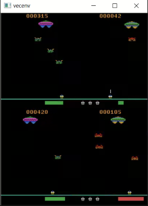 - 만약에 다른 Atari 게임을 하고 싶으면, env = make_atari_env('Breakout-v0', n_envs=4, seed=0)에서 'Braekout-V0'를 다른 atari 게임 이름을 사용하시면 됩니다!