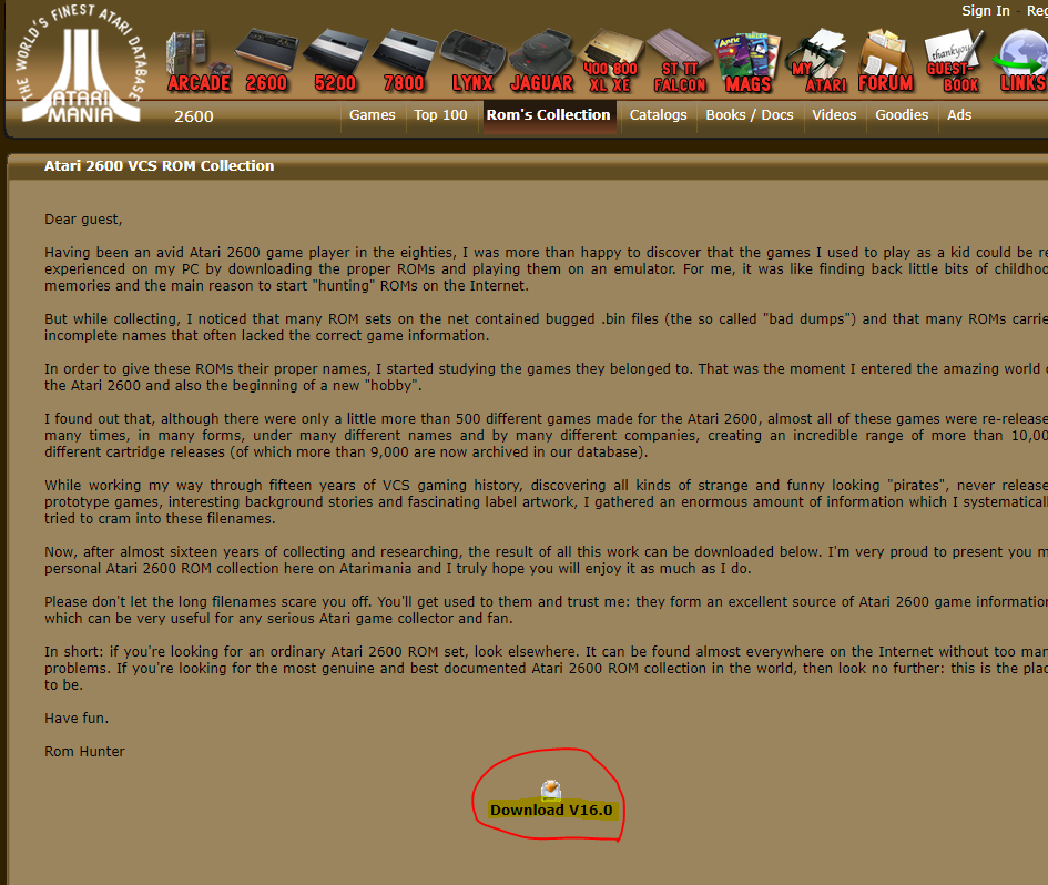 Dear guest,Having been an avid Atari 2600 game player in the eighties, I was more than happy to discover that the games I used to play as a kid could be re-experienced on my PC by downloading the proper ROMs and playing them on an emulator. For me, it was