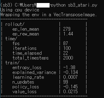 - 이제 거의 다 왔습니다 ㅎㅎ 아래의 코드를 이용해서 Atari 학습을 진행하면 됩니다!!