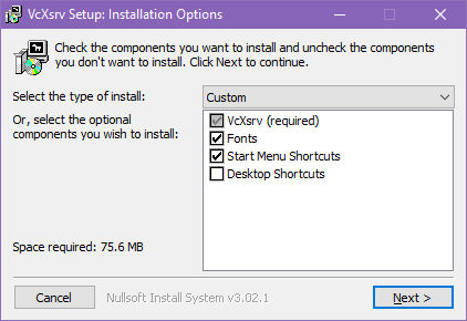 링크 에서 다운받은 VcXsrv Widows X Server를 설치한다.