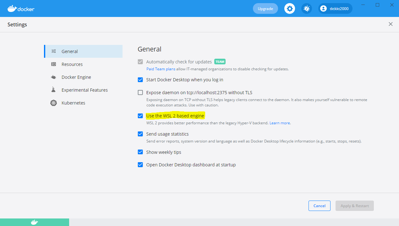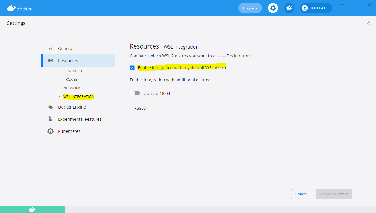 이후 WSL:Ubuntu 를 실행해 도커를 확인하면 다음과 같이 출력되는 것을 확인 할 수 있다.