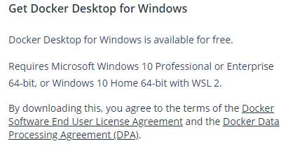 먼저 링크 에 접속해서 오른쪽의 Get Docker 버튼을 클릭하여 다운로드 뒤 설치를 진행한다.