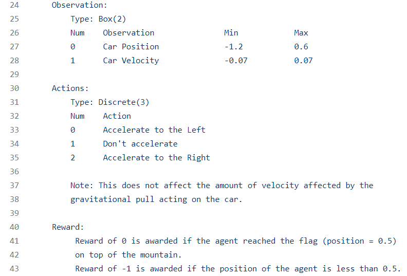- mountain_car 링크 : https://github.com/openai/gym/blob/master/gym/envs/classic_control/mountain_car.py