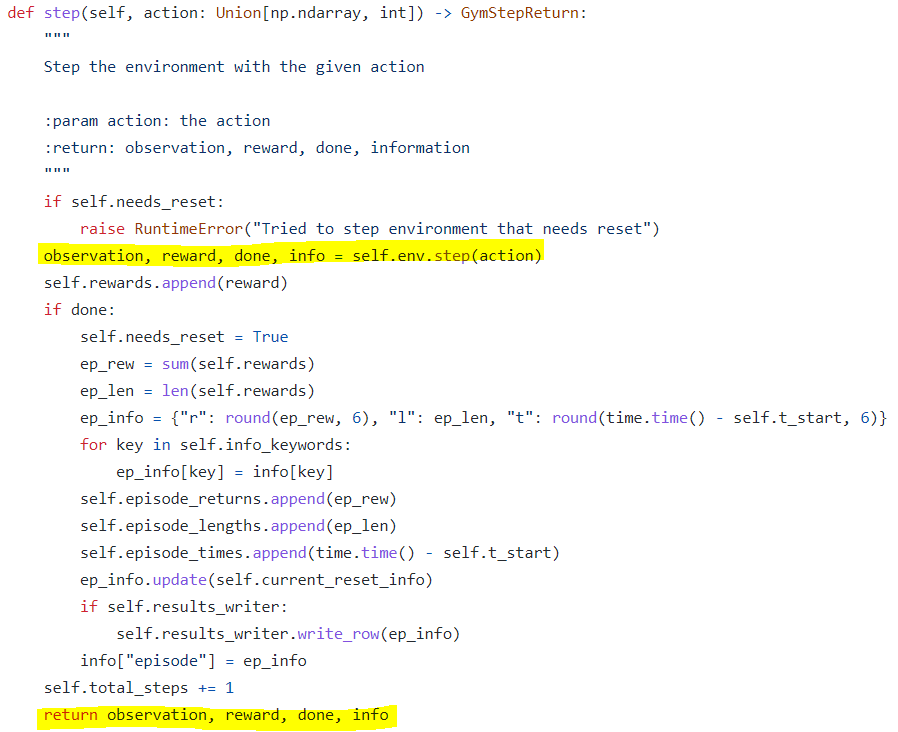- monitor.py 링크 : https://github.com/DLR-RM/stable-baselines3/blob/09e9fc42eb653cacc0b6db203fa83faa0530e297/stable_baselines3/common/monitor.py#L17
