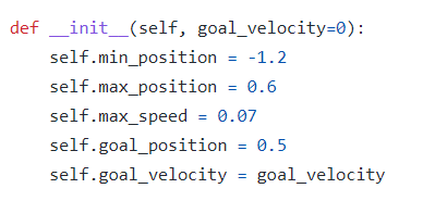 - 이때 goal_position과 goal_velocity는 def __init__() 에서 선언해줍니다!