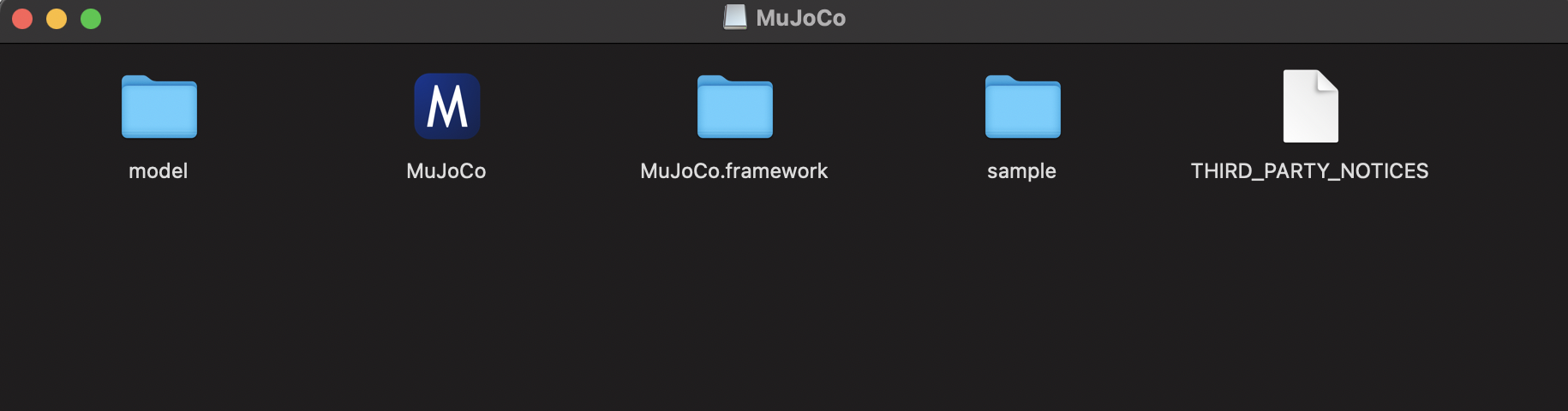 $ cp -r /Volumes/MuJoCo/MuJoCo.framework/Versions/Current/libmujoco.2.1.1.dylib libmujoco210.dylib