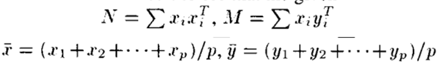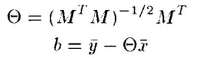 Nadas 논문에 보면 유클리디안 공간에서 x1~xp, y1~yp가 주어졌을 때 특정 에러값을 최소화하는 translation b와 orthogonal matrix theta은 아래식과 같이 명시적으로 표현 될 수 있다고 한다.