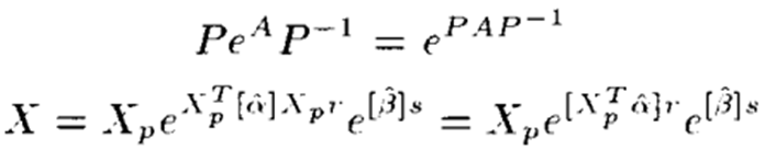 각 A와 B를 로그 형태로 만든 alpha와 beta의 경우 벡터 형태이기 때문에 자기 자신에 대한 회전 r, s에 의해 변하지 않기 때문에 위와 같은 식 형태로 나타낼 수 있다. 또한 Xp가 particular solution이므로 Xp*beta = alpha와 같은 표현이 가능하다. 따라서 X가 AX=XB식을 만족하게 된다.