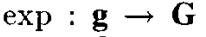 리 그룹의 근본적인 컨셉은 지수함수(exponential) 맵핑이다. 리 그룹 G가 있고, 이에 대응하는 행렬 리 대수 g가 있을 때 지수 함수 매핑은 아래와 같이 단순히 g를 G로 매핑하는 형태이다.