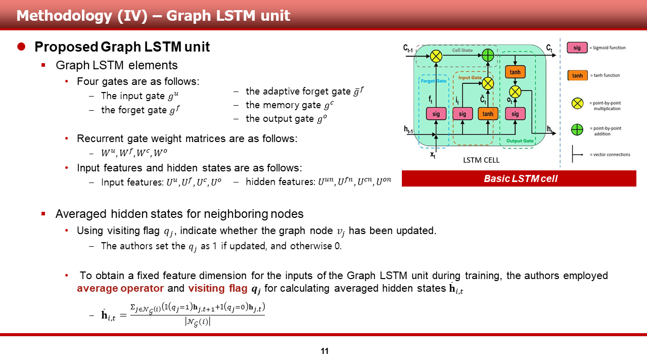 가장 먼저, Graph LSTM elements의 경우, 기존의 LSTM element와 거의 유사하다는 것을 LSTM의 그림과 슬라이드내 적어진 사항들을 보시면 알 수 있습니다. (notation 같은 경우는 조금 다를 수 있습니다.)