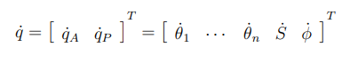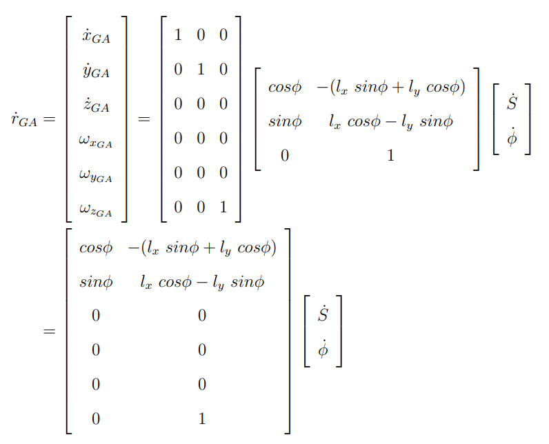이때 arm의 조인트 속도는 mobile platform 속도에 영향을 끼치지 못하기 때문에 (실제로는 그렇지 않지만) 자코비안 중 하나는 0이 된다.