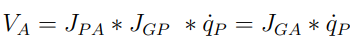 여기서 J_pa의 경우 모바일 플랫폼과 로봇 팔 Base 속도에 대한 관계를 표현한다. 이때 Global frame에 대한 모바일 플랫폼 자코비안을 사용하면 Global frame 기준에서 로봇 팔 Base의 속도를 표현할 수 있다.