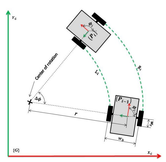 모바일 플랫폼의 경우 바퀴의 이동거리를 통해 식을 정리하게 된다.