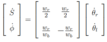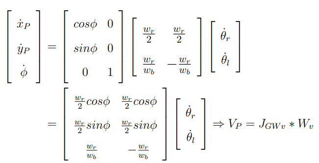 최종적으로 Global frame 기준으로 바퀴 속도에 따른 모바일 플랫폼의 Task 벡터의 식을 정리하면 아래와 같다.