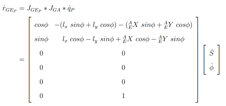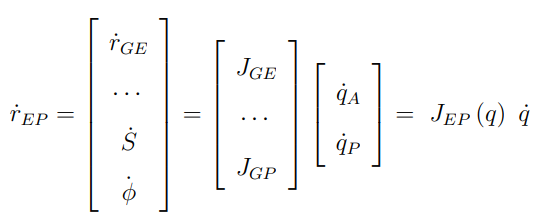 end effector의 task vector의 경우 아래와 같은 자코비안의 형태로 나타날 수 있다. GE = Ground(Global) to End effector