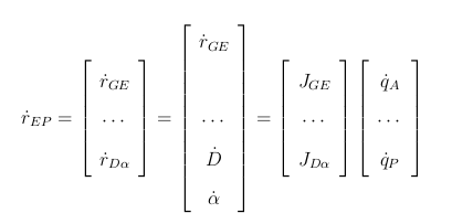 이때 Task 속도 벡터에 대한 경우는 P2E로 End Effector pose relative to mobile platform poses를 이용하여 표현할 수 있다,