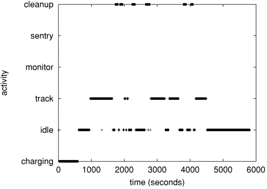 물체 추적(object-tracking), 보초(sentry-duty), 청소(cleanup), 물체 감시(monitor-object)가 가능한 이종의 로봇들이 존재할때, 무작위의 작업을 임무 공간에 던져주고 어떻게 잘 일들을 처리하는지 검증