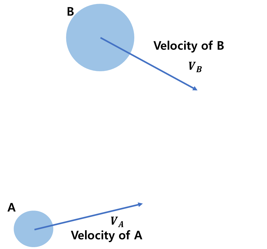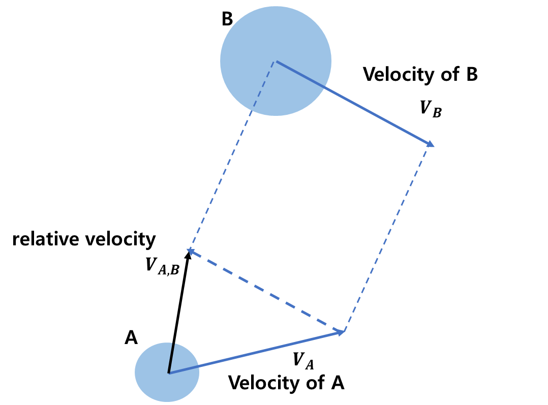 이때 A를 기준으로 한다면 B의 상대속도는 다음과 같이 표현할 수 있다 [Fig.2]