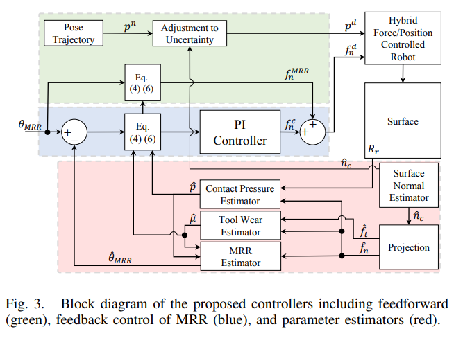 사람의 Skill을 로봇에 전달하는 방법론에 대해서 이야기한다. 사람의 demonstration으로부터 사람의 그라인딩 작업을 구성하는 파라미터들을 예측하는 것을 기본으로 한다. 예측 된 파라미터들은 adative robot control에 사용 된다. 논문에서는 desire MRR을 유지하는 robust control 방식을 제시한다. (접촉 면족과 도구 마모를 고려한)