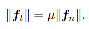 또한, tangential force와 normal force의 관계는 좌측 식과 같이 표현된다.