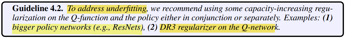 - 중앙 그래프를 보면 CQL regularizer 값이 매우 작은데, 이로써 언더피팅은 아니라는 것을 알 수 있음