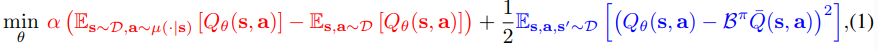 - dataset Q-value를 구하는 법 : 오프라인 데이터셋 $D$에서 샘플된 transtions $(s, a, r, s') \in D$에 대한 추정된 Q-value들의 평균 값을 산출