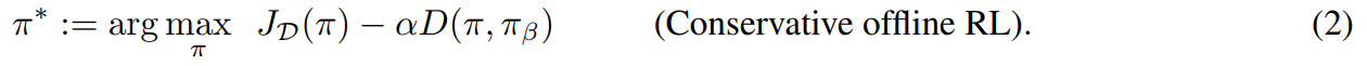 - $J_D(\pi)$ : offline dataset $D$에 있는 transitions에 의해 유도된 MDP에 대한 학습된 정책(learned policy) $\pi$의 average return을 의미함