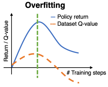 - 추정된 dataset Q-value 값이 최고점에 해당하는 가장 최근의 체크 포인트를 선택해야 함. (1-1에 있는 오버피팅 탐지법 그림에서 초록색 점선을 의미)
