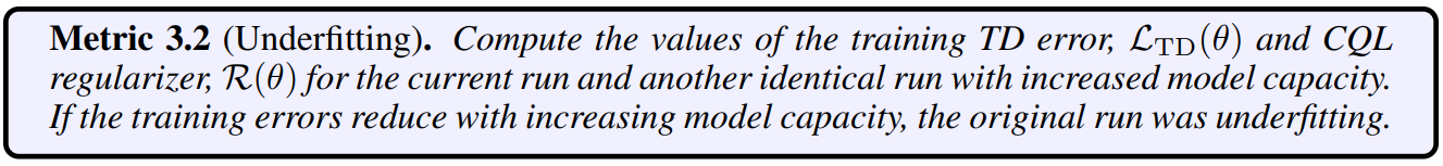 - 이와 유사하게 본 workflow도 먼저 오프라인 강화학습에 대한 over-fitting과 under-fitting을 정의하고, 이를 추적할 수 있는 지표와 조건들을 제안함.