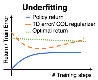 - CQL 학습 중에 TD error 발산하고 있음 : 언더피팅 확인