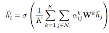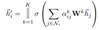 = 모든 node에 대해서 concat 하므로 $\overline h^′_i \in R^{F^′} \times R^{F^′}$