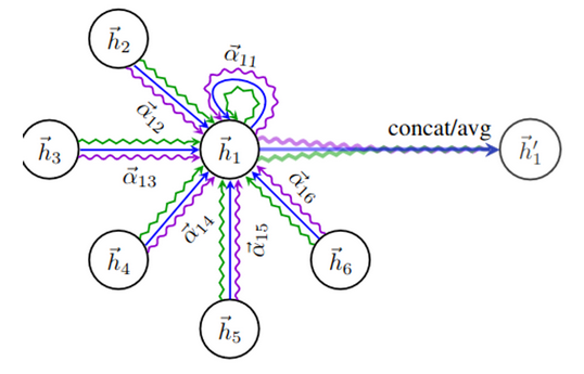아래 이미지는 Multi head attention과 Averaging 이 적용된 Graph