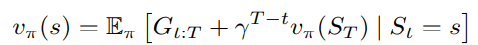 G_{t: T}=R_{t+1}+\ldots+\gamma^{T-t-1} R_T=\sum_{k=1}^{T-t} \gamma^{k-1} R_{t+k}