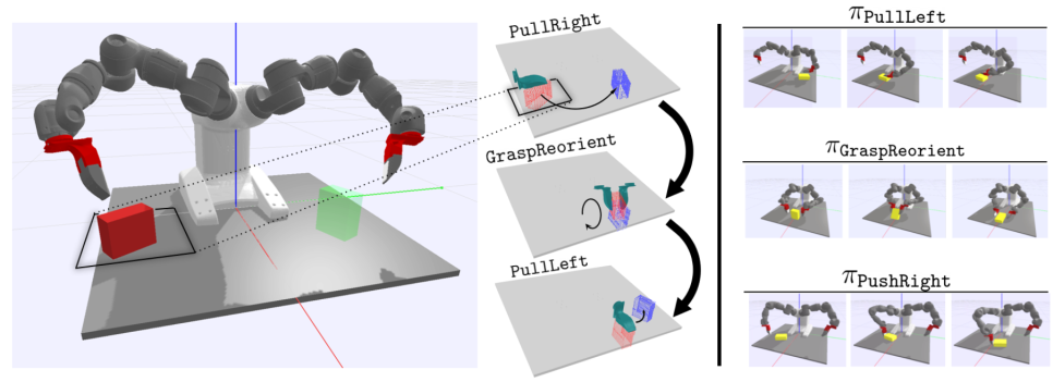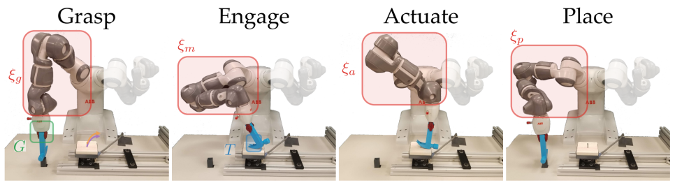 해당 논문에서는 다단계계(볼트에 체결된 너트를 돌리는 작업) 작업에 대한 연구를 다룬다. 힘이 필요한 작업을 하기 위해서는 로봇은 이산적인 선택들을 해야한다.(물체를 손으로 누를 지, 주변 환경으로 누를 지 등) 또한 로봇은 연속적인 선택들도 해야한다 (집는 자세, 로봇 자세, 물체 자세 등). 이런 선택들은 작업을 성공시키는 데 복잡하게 상호작용하게 된다. 각각의 다른 선택들을 일련의 파라미터화 된 상위 레벨 액션으로 정의할 수 있다. 논문에서는 이런 일련의 상위 레벨 액션을 찾고, 액션에 대한 복잡한 제약조건을 만족하는 파라미터를 찾는 것을 목표로 한다. 좀 더 TAMP에