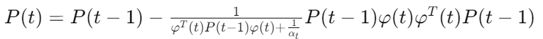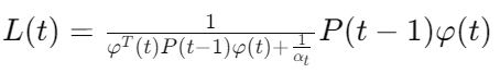 다만, 여기서는 행렬의 역이 필요하기 때문에 계산 비용이 높을 수 있다. 이를 해결하기 위해 Recursive Least square를 사용할 수 있다. 역행렬이 없는 RLS를 위해서는 파라미터, 이득 벡터, 오차 공분산 행렬의 업데이트를 순차적으로 반복적으로 진행해줘야한다.
