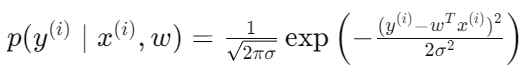 입력 데이터인 x와 매개변수 혹은 파라미터 w가 줘어졌을 때, 출력인 y가 나올 확률을 표현하는 likelihood를 나타내면 아래와 같다.