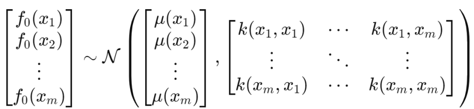 Gaussian Process는 연속적인 함수의 집합을 정의하는 확률 모델이다. 유한한 부분집합의 랜덤 변수들이 다변량 가우시안 분포를 따르는 랜덤 변수들의 집합이다. 가우시안을 표현할 때 함수와 공분산은 함수의 형태로 나타내진다.