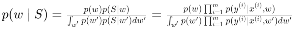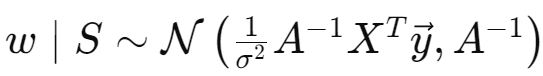Bayseian Linear Regression에서 파라미터에 대한 분포와 파라미터의 사후는 아래와 같이 표현된다. 여기서 파라미터의 사후라 함은 미래의 파라미터를 예측한다고 생각하면 된다.