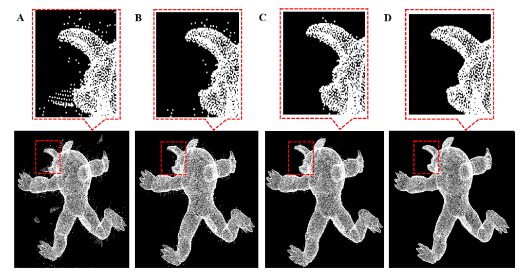 Outlier란 그림에서 보이는 A번째 사진처럼 우리가 찾으려는 물체 형태가 아닌 밖에 있는 점들을 말한다. 이는 센서 측정 노이즈(반사, 측정거리 등)에 의해 생성 되는 Point 들이다. 만약 내가 깔끔한 point cloud 데이터를 얻고 싶다면 outlier를 지우는 방법에 대해서 찾아봐야 한다.