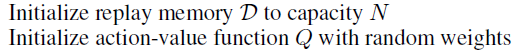- replay memory D 초기화 (D의 메모리 용량은 N)