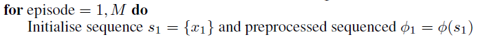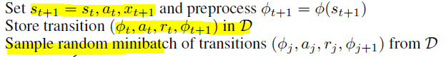 * 다음의 sequence를 transition이라고 정의 : [ Φ_t, a_t, r_t, Φ_t+1 ]