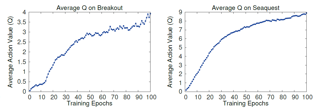 - 학습에는 총 천만 프레임을 사용했으며, 최근 백만 프레임만을 replay memory에 사용